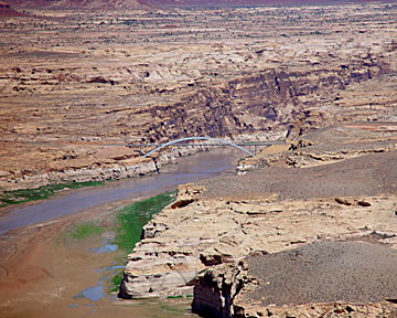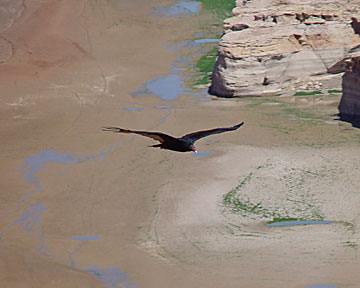 I headed south on Utah 95 and crossed Lake Powell at Glen Canyon. Before crossing Lake Powell, I stopped at the viewpoint at Hite to take these photos of a raptor hovering and the bridge on highway 95 that I would cross a few minutes later. The water level in Lake Powell appeared to be very low compared with the level the last time I was here, in 1996.