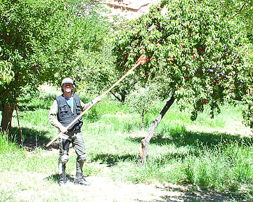 A short distance east on highway 24, still in the Park, we came upon the orchard with peach and apple trees. The peaches were ripe and very sweet. The apples, not yet. The deal was pick your own, and anything you can eat inside the fence is free. So we picked and ate a few of the sweet peaches. They were delicious.