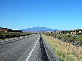 As the highway turns northeast toward Blanding, it winds up and through the dramatic cut in the ridge seen in the photo at right.