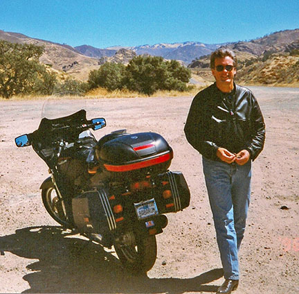 This was my second motorcycle. Photos below are from when the bike was almost new, taken in 1993 somewhere along US 1, the Pacific Coast Highway, in California (left) and a few years later, probably 1999, along California Highway 33 north of Ojai (right). Notice the added rubber edge moulding around the windscreen in the photo on the left. That was my first attempt to reduce turbulence from the stock Concours windscreen, which was legendary. Someone was advertising this edge trim for that purpose. It didn't work. The Givi topcase seen in the photo on the right was added later to increase luggage space for longer trips.