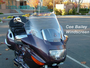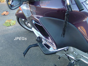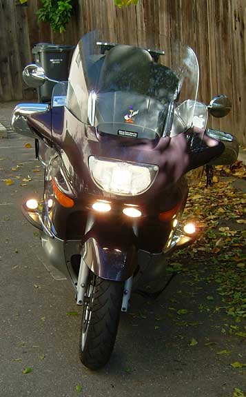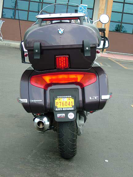 ![]() Additions over the years included halogen road lights on the front fairing and crash-bar covers for visibility, a shallower, wider, more comfortable rider seat from Corbin, J-Pegs to provide an alternate foot position during long-distance highway riding, a Cee Bailey aftermarket windscreen, and a Kenwood 150-watt subwoofer mounted in the left rear luggage compartment to over-compensate for lack of bass in the factory stereo, which was otherwise satisfactory. A few one-inch and 1-1/2-inch holes were drilled in the periphery of the luggage compartment inside the lip where they were not visible with the lid closed to let the sound out. The extra bass didn't do much good on the highway, usually getting lost in the wind, but at low speeds and standing, if I cranked up the volume with that subwoofer on, the sound was awesome. On the rider-seat issue, I found the original seat to be too high in the center, therefore uncomfortable on long rides. Amazingly enough, a dealer in Vancouver, Canada, informed me that the seats installed on K1200LT bikes sold by BMW in the US were different from the ones sold in Canada. The Canadian seats, which he called the "Canadian Manly Seats" were wider and more comfortable. The Corbin seat was less expensive, however, and did solve the problem, although it was a bit shy on padding. At some point, RoadRunner decals that I picked up at a car show were added, because I thought that purple cartoon bird looked a bit like this bike.