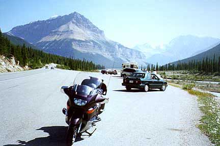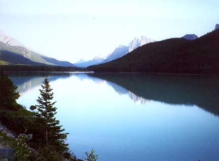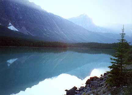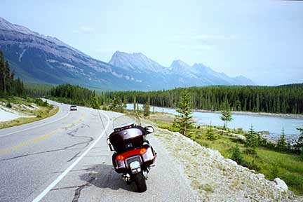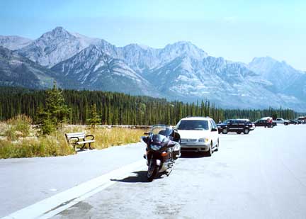 Early the next morning I arose, and rode highway 93 through Banff and Jasper National Parks to the town of Jasper, about 200 miles north from Banff. The road is good. It is 200 miles over which the majestic mountain scenery never wanes, with new scenes of breathtaking beauty -- including craggy peaks, lakes, and a glacier -- around every bend in the highway.
