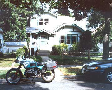For my first act, I wheeled the loaded K1200LT out of my garage onto the driveway and promptly dropped it on its right side. Listing at about 30 degrees and looking for all the world like a beached whale, it waited patiently while I rounded up a couple of neighbors to come and help me pick it up. I should be used to this by now. Virtually every bike I said I would never drop has been dropped. It's always a little depressing when it happens, but I'm getting better at shrugging it off. This time it took me about an hour to regain my confidence. Damage to the K1200 was minimal -- a couple of scratches on the protectors. Apparently BMW has designed for this, although the protector bars are hidden, not right out there like on a Harley dresser or a Gold Wing. Finally, at 11 AM I set off.