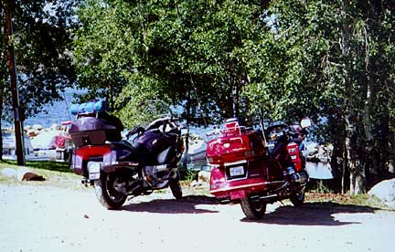 It was a long ride on Friday across Wyoming. I got to test the antilock brakes on the Beemer when out of the corner of my eye I spotted a deer moving toward the road from the left. Boris and Elyse on the Gold Wing were ahead and didn't see it, but as I came to nearly a full stop, the deer crossed at 90 degrees to my path about three feet from my front wheel. The pickup coming toward us reacted similarly and also missed.