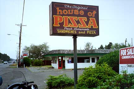 After breaking free of the traffic, I headed west to the Olympic Peninsula. It was too late in the day to take the leisurely ride around the coast north of Olympia National Park. So I cut across to Aberdeen and found a room and dinner there before heading south the next morning. Along the way I saw a defunct pizza shop with this sign, which reminded me: there is a reason why businesses fail.