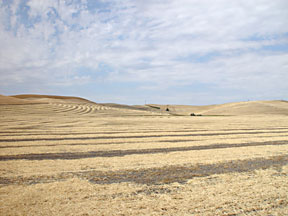 Before I entered the lounge, I saw two Harley choppers outside in the parking lot. While I was eating, these two swarthy boys in leather, both about half my age, came and sat at the table next to mine to drink their beers. I struck up a conversation by asking if those bikes outside were theirs. They were, and they told me they were on vacation from Nebraska. They both worked for a company that made ethanol for motor vehicle fuel from corn and had ridden here on the bikes. I was impressed. The bikes were stripped, with no side luggage, and it always amazes me when people manage to travel so lightly. They had the "bad biker" look, but were just ordinary guys with ordinary jobs off on vacation. Their vacation consisted of traveling thousands of miles in two weeks on bare-bones Harleys. What an adventure! |